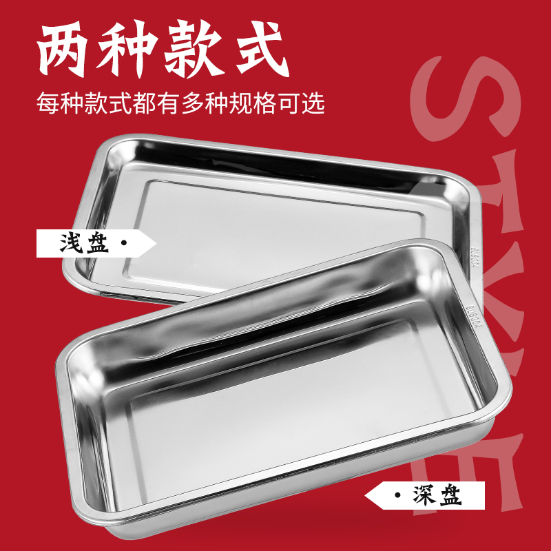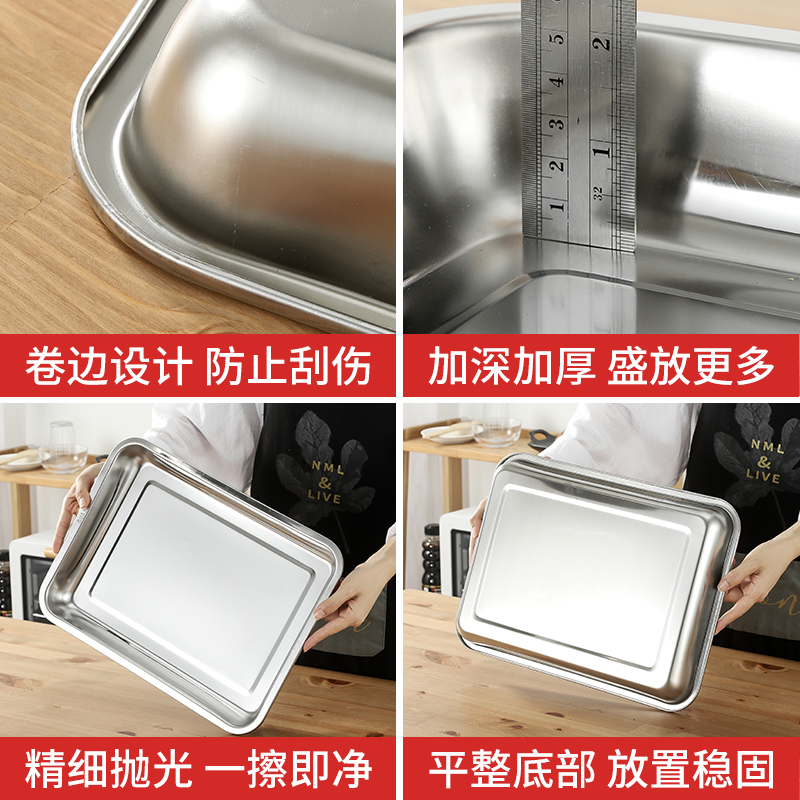 304 Thickened Stainless Steel Square Pan Medical Stainless Steel Deep Shallow Nursery Tray Rectangular Dinner Plate Canteen Tray Dinner Plate