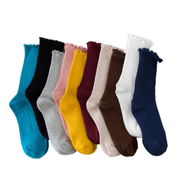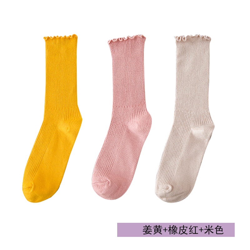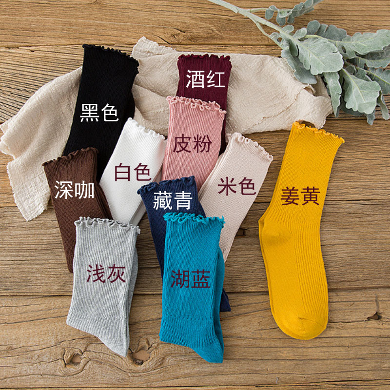 1 pair of stacked socks women's Korean autumn and winter cotton Korean version of the middle tube candy-colored lace pure cotton stockings