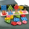 Ginny Rabbit Geometric shape set column Montessori early education cognitive Board Children's wooden toy inlaid shape matching building blocks