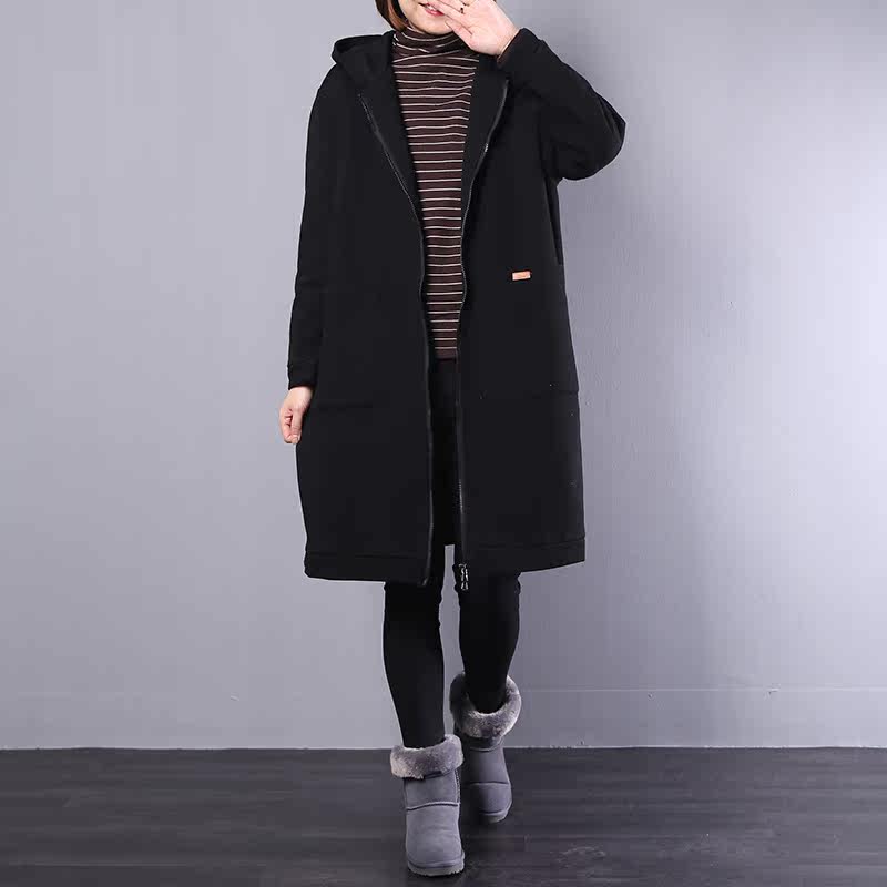2019 autumn and winter new Korean version loose large size medium and long version literary leisure plus cotton women's jacket hooded cotton jacket