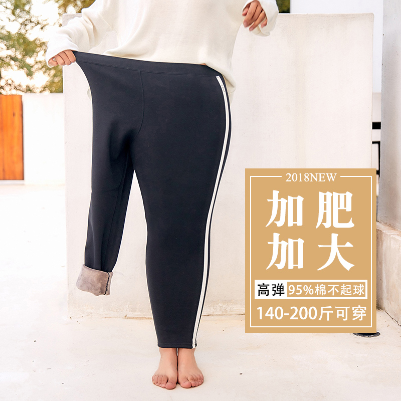 Oversized velvet pants women's plush cotton high-rise side white leather underwear new stretch fat MM skinny trousers