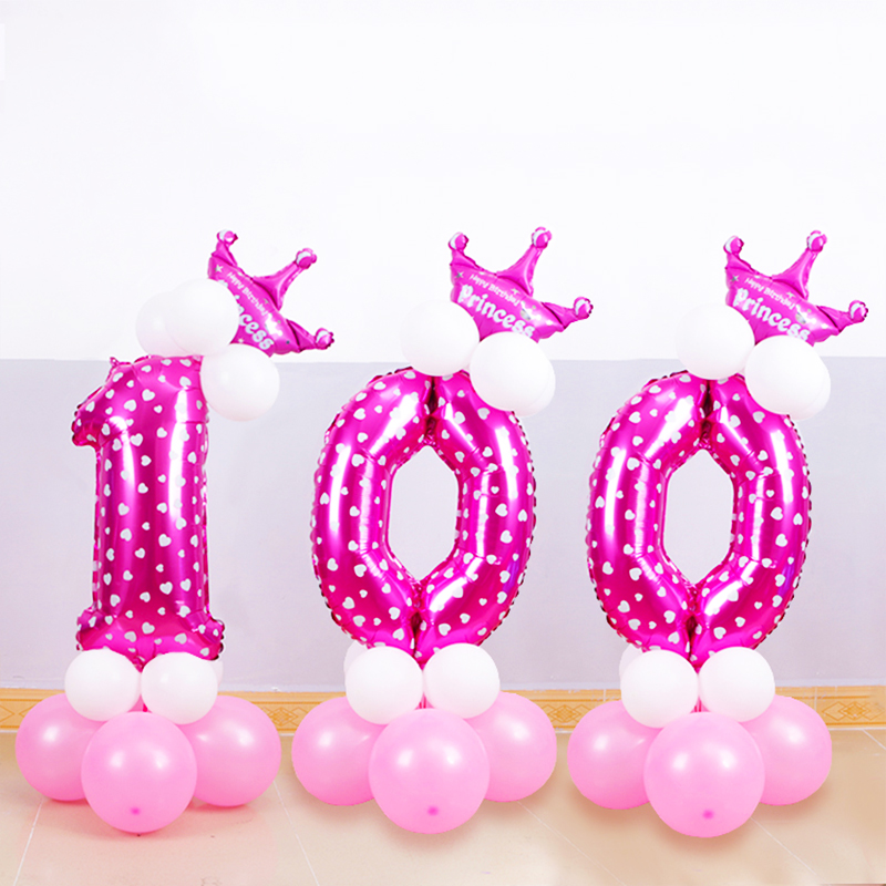 Baby full moon digital column hundred days stage decoration road lead private room layout large pink 0-9 aluminum film balloon