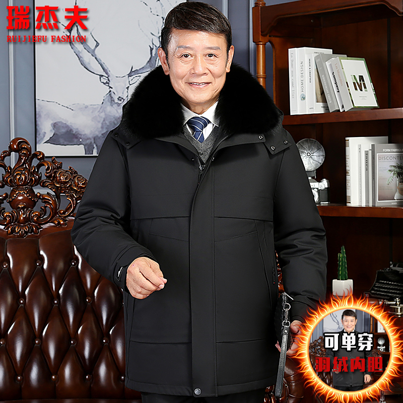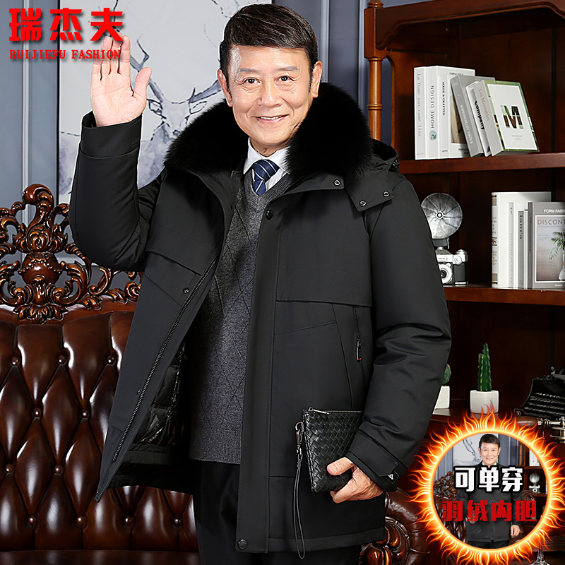 Middle-aged and elderly down jacket men's thickened white duck down short cold-proof clothing father's winter clothing inner tank can be worn alone with a large size coat