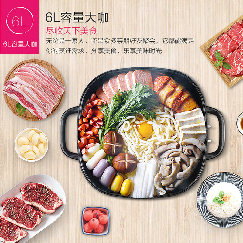 Mei's electric hot pot household multi - function 6L large - capacity electric cooker without sticky floor pan cooking