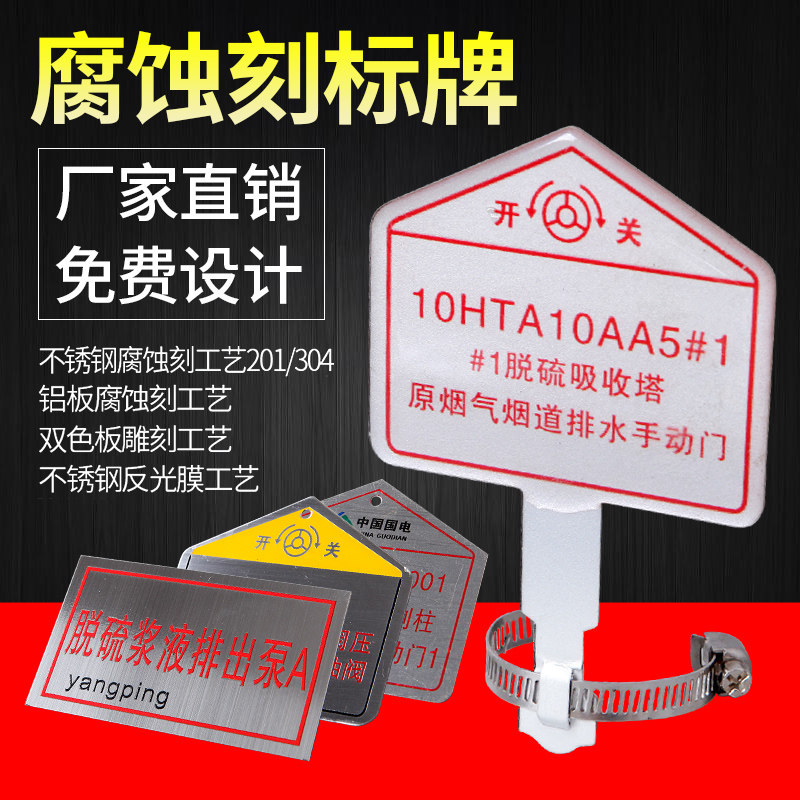 Custom power plant valve label bracket listing aluminum plate Stainless steel corrosion identification switch tag 70*80mm Chemical plant normally closed normally open equipment identification plate Acrylic PVC safety identification