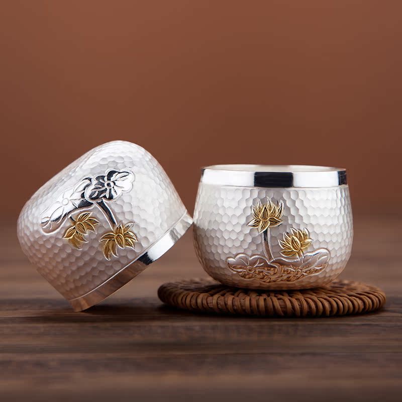 Pure Silver Kung Fu Tea Cup 999 Silver Tea Cup With Fish Gold Plated Silver Water Cup Silver Lip Cup Silver Small Tea Bowl Tea Bowl