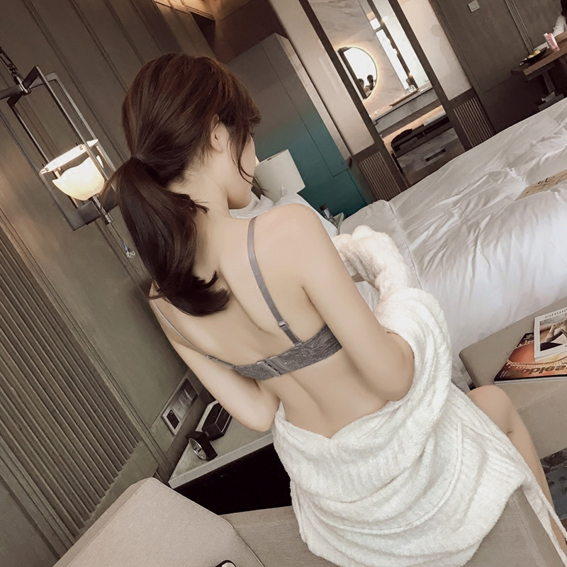 Japanese underwear suit female lace little cute gathered thin section no steel ring on the support small chest sexy cross strap V-shaped