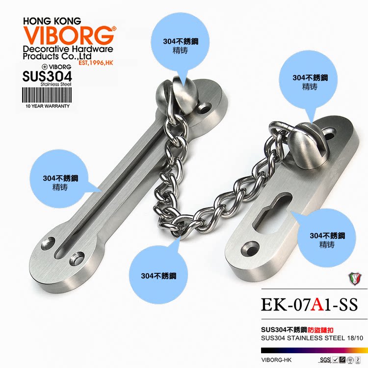 Hong Kong Yubao 304 stainless steel door inside anti-leech door chain door chain door buckle anti-theft buckle safety chain door bolt anti-leech lock