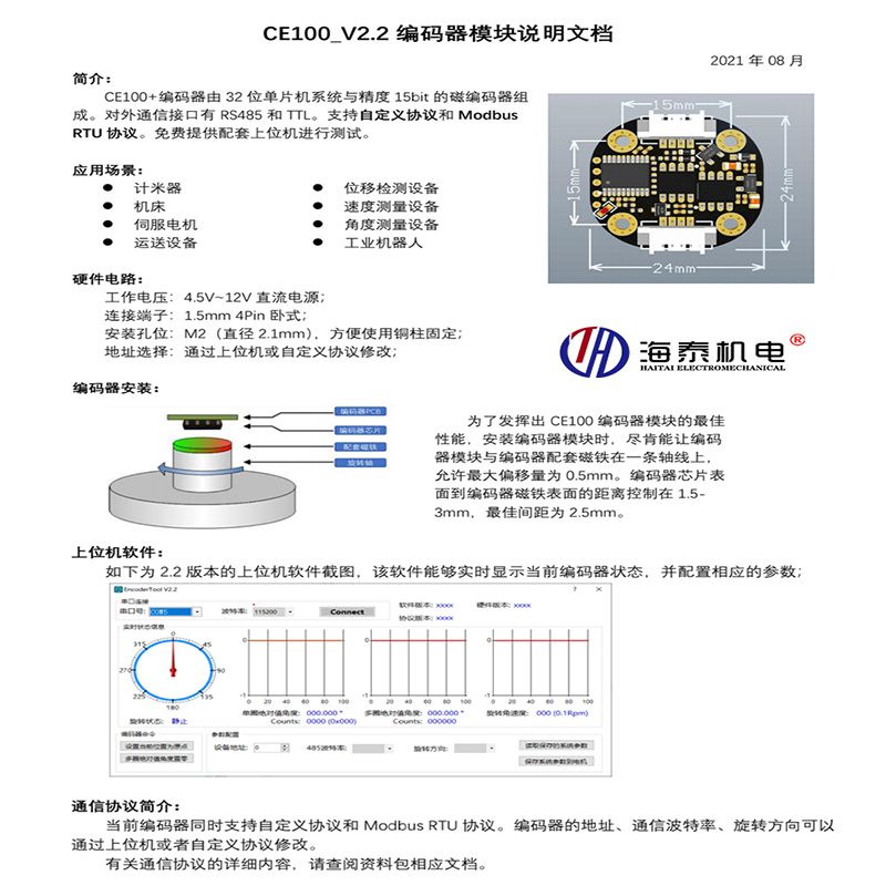 Angle sensor CE100 encoder high precision 15-position angular speed RS485 single-turn rotary encoder