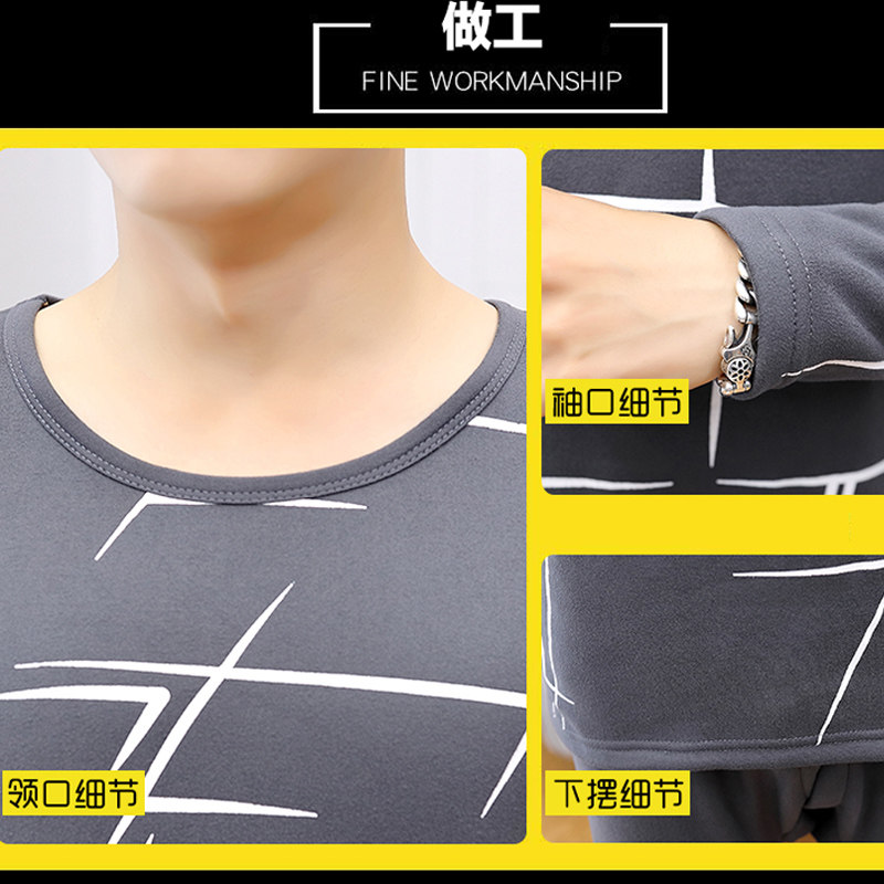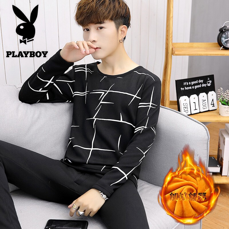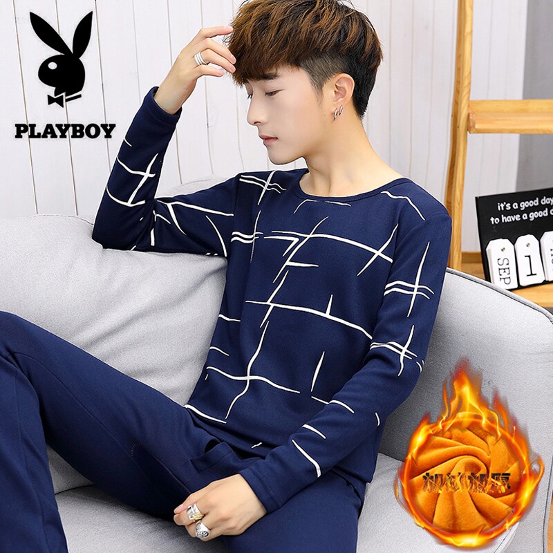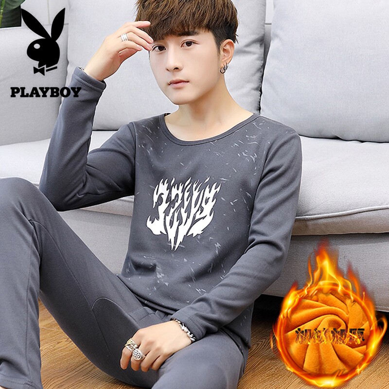 Playboy autumn and winter men's thermal underwear men's thickening and velvet youth round neck underwear set autumn clothes sanitary pants set