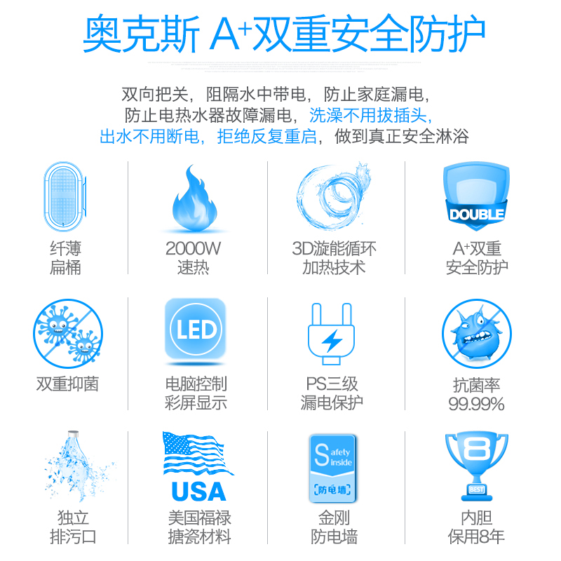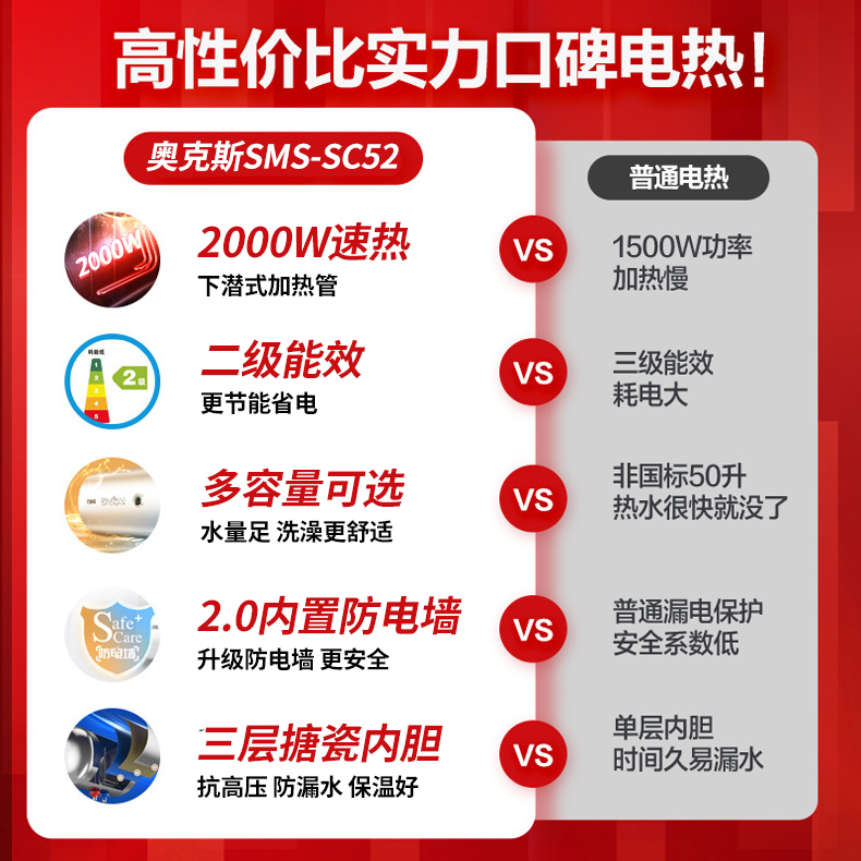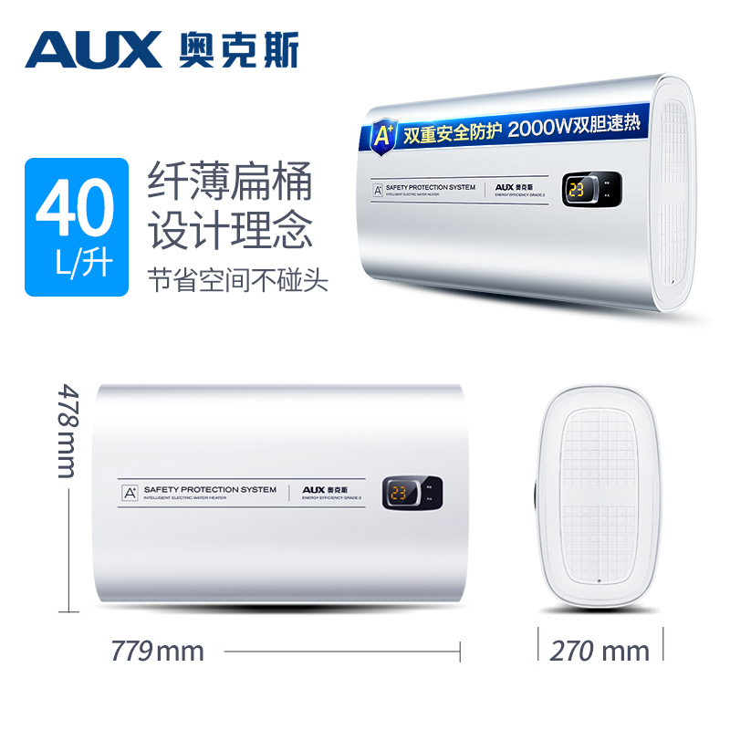 Oaks flat barrel water heater electric household water storage type quick heat energy saving ultra-thin double tank 40L5060l80 liters small