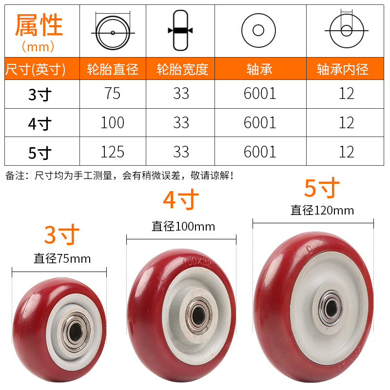 3 inch 4 inch 5 inch polyurethane caster single wheel silent flatbed cart wheel wear-resistant heavy industrial wheels