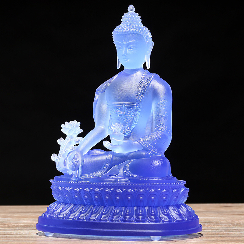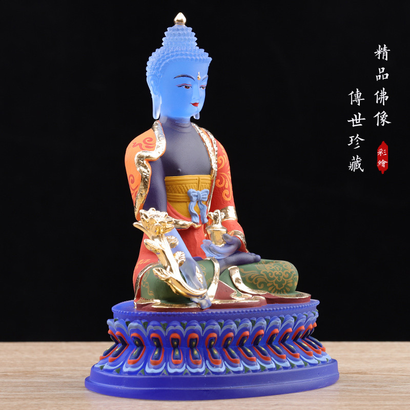 Taiwan Sticker Gold Medicine Master Buddha Painted Home Dedicated to Medicine Master Seven Buddha Glass Medicine Master Buddha Statue Medicine Master Guang Rulai Buddha