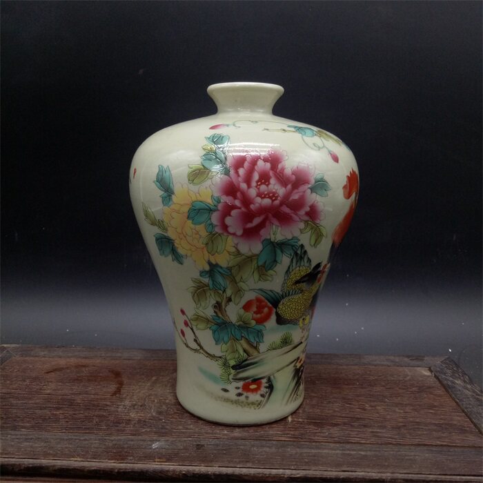 Tongzhi Year Pastel Porcelain Plum Bottle Antique Antique Antique Antique Old Goods Collection Genuine Old Objects