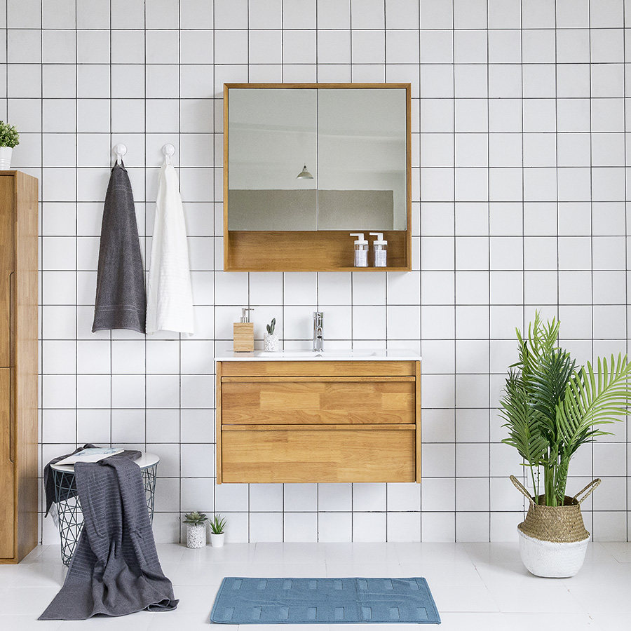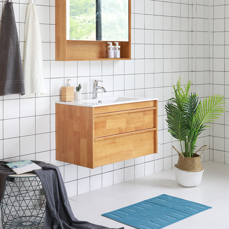 Day Ensemble Log Wind Modern Nordic Minimalist Style Solid Oak Bath Cabinet Wash Bench Suspended Support Customised