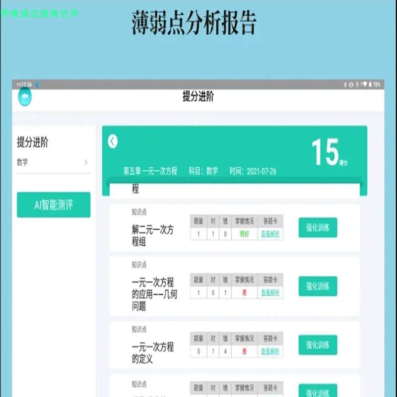 Ai intelligent scoring learning machine tablet computer general subject accurate evaluation weak point analysis report test preparation video