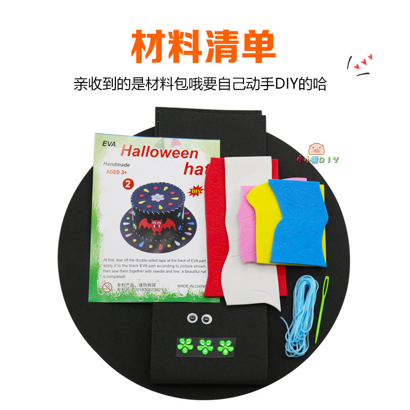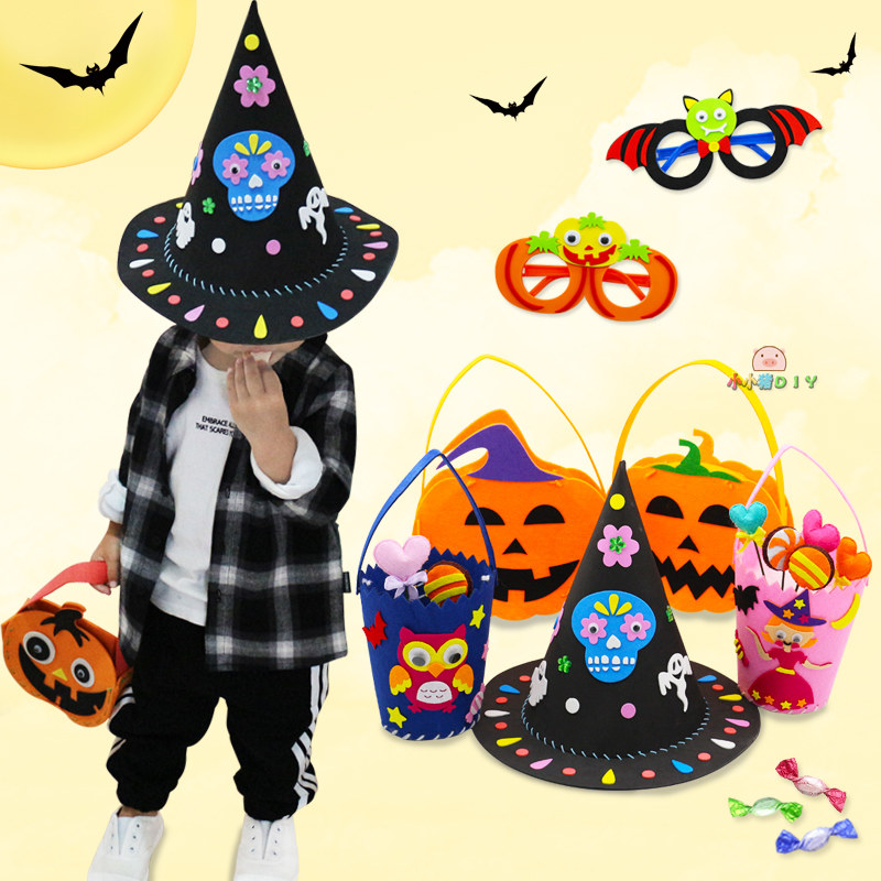 Christmas Pointed hat 5pcs EVA hat 3pcs non-woven hat 4pcs Jack-o-lantern 3pcs eva glasses 4pcs EVA handmade bag 4pcs non-woven candy bag 4pcs eva skull pointed hat eva pumpkin