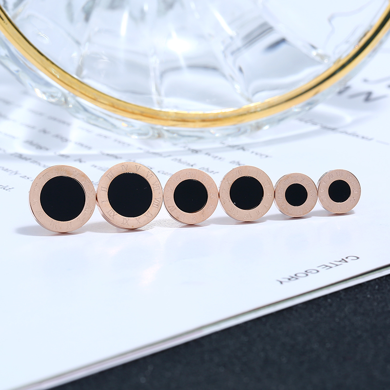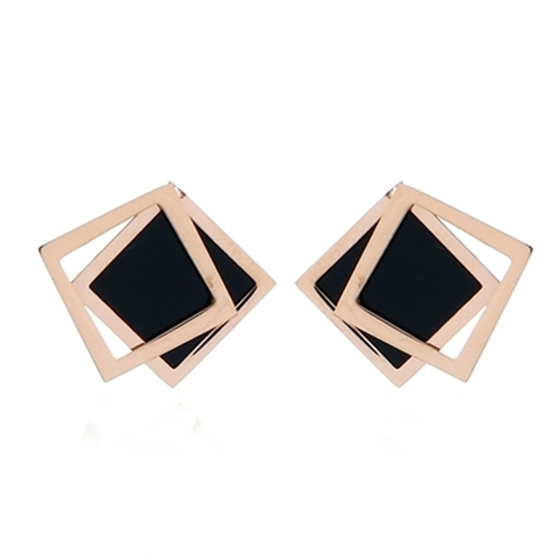 Titanium steel geometric earshot female black minimalist about 100 hitch Korea personality anti-allergy earrings rose gold don't fall out of color earrings