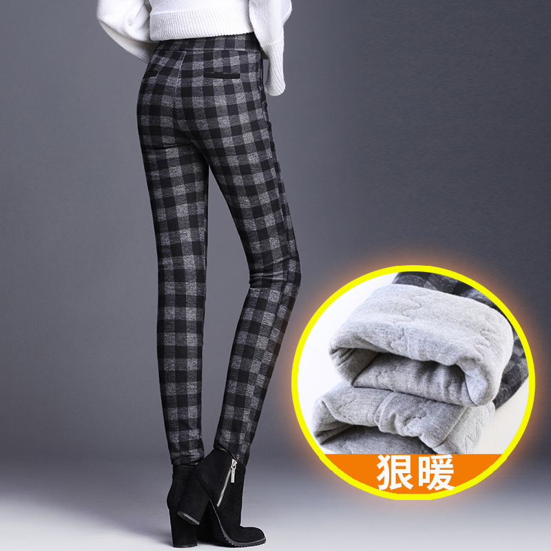 Winter plaid plus suede thickened inner lap pants woman outside wearing large size women pants warm middle aged mother wool cashmere cotton pants