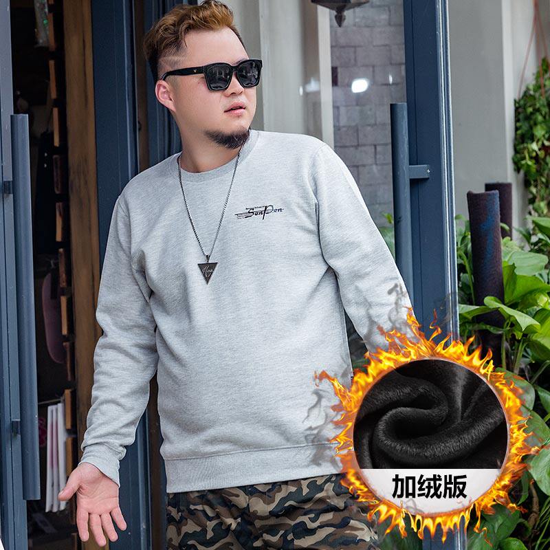 Sweatshirt male fatter plus fattening up for code 2021 Spring autumn style Loose Plus Suede Thickened Long Sleeve T-shirt With Undershirt Jacket