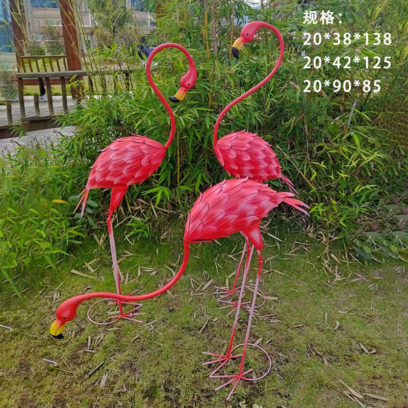Red wrought iron flamingo three-piece set Pink wrought iron flamingo three-piece suit