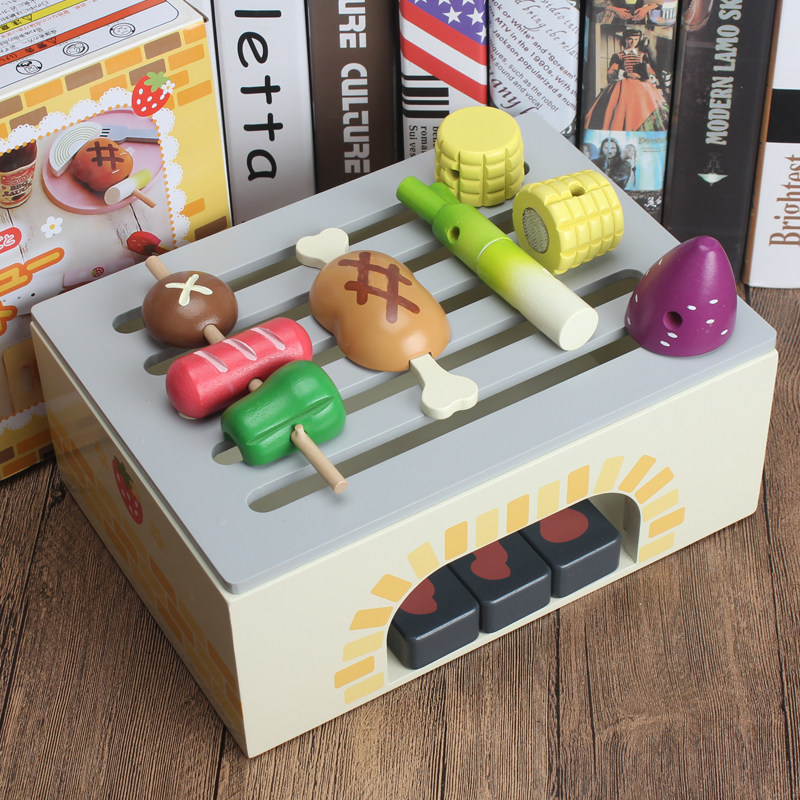 Wooden barbecue grill toys BBQ simulation play house wine 3-4-5-6 years old baby boys and girls children's early education puzzle