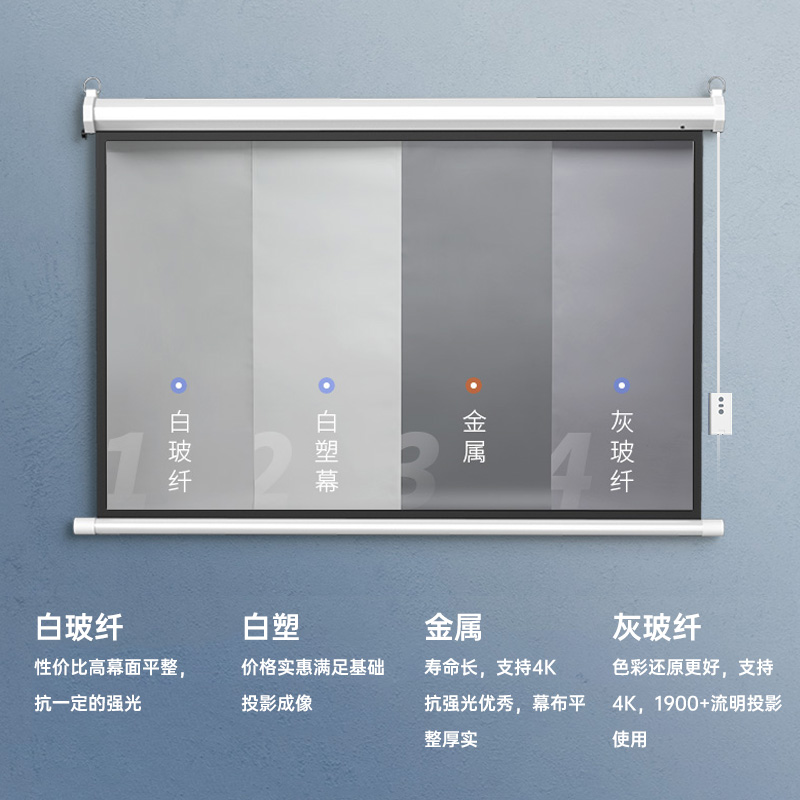 Projector Electric remote control curtain cloth 4K ultra high clear 100120150 inches Lift When benut metal black crystal anti-light cloth concealed home wall-mounted simple patch wall white glass fiber upgrade