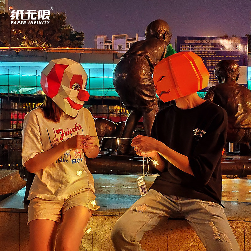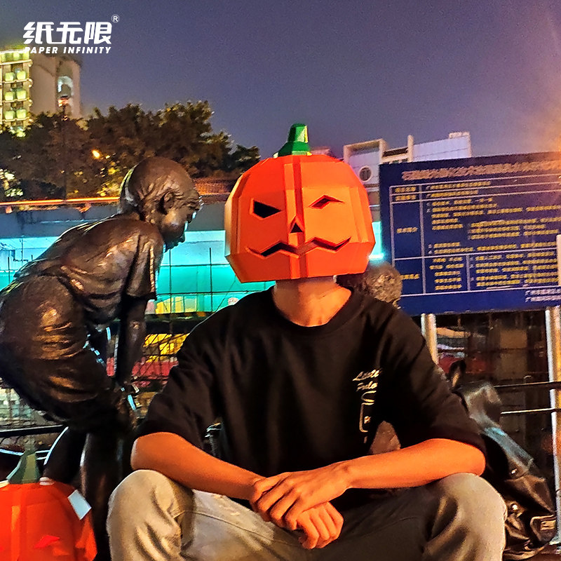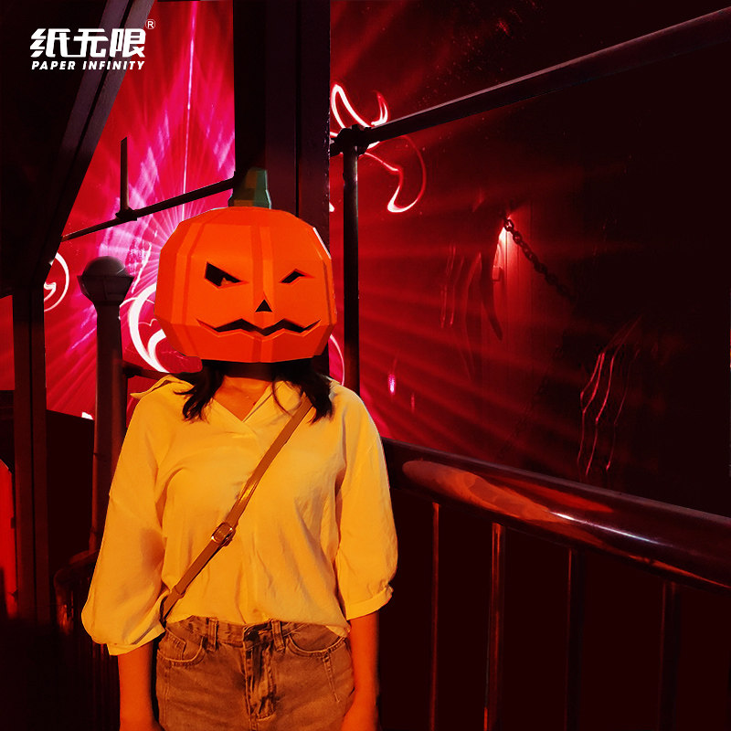 Paper infinite Halloween pumpkin headgear mask lamp decoration origami paper mold shooting the whole person horror performance props