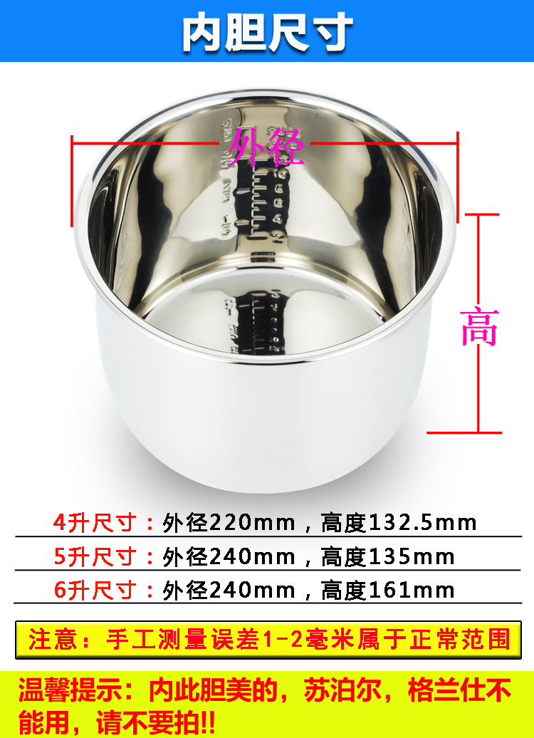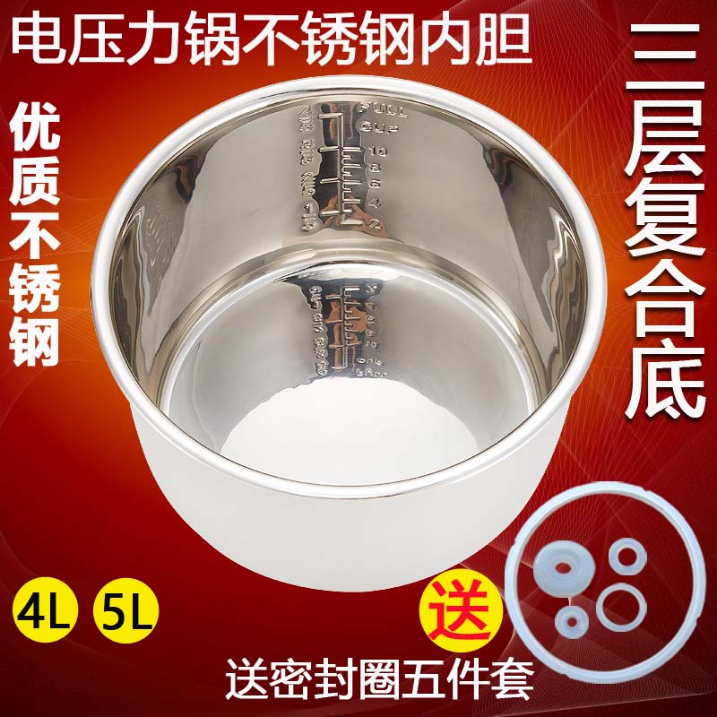 Peskoe hemisphere electronic pressure cooker liner 304 stainless steel thickened three-layer compound bottom 2 84L5L6 liter pot Universal