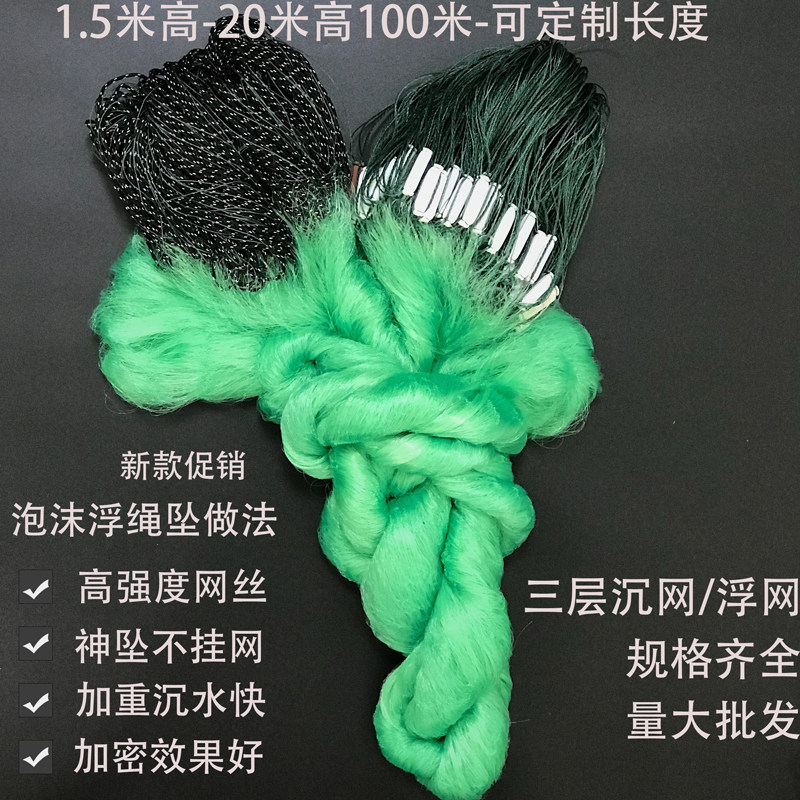 High-quality green wire rope falling fishing net fishing net sticky net three-layer wire mesh fishing net sinking net 3-6 meters high and 100 meters long