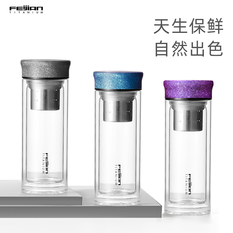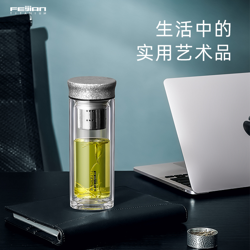 (Official) Flying Sword Upscale Pure Titanium Glass Cups Double insulation Men's convenient antibacterial bubble tea water separation