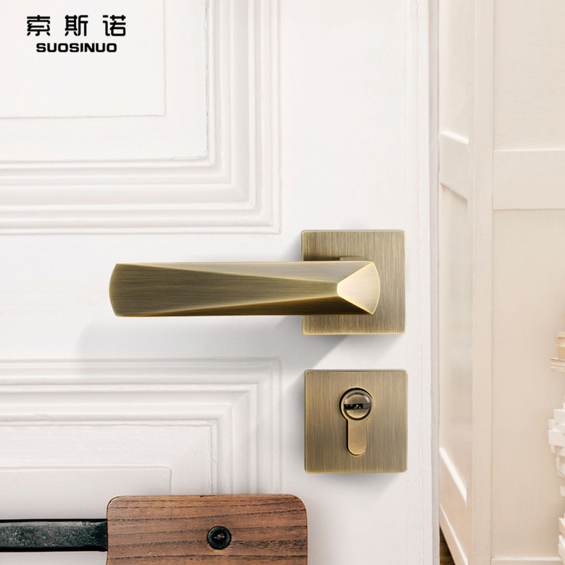 Door lock Indoor bedroom mute magnetic lock Nordic door lock Solid wood door lock Green bronze two-piece lock three-piece set