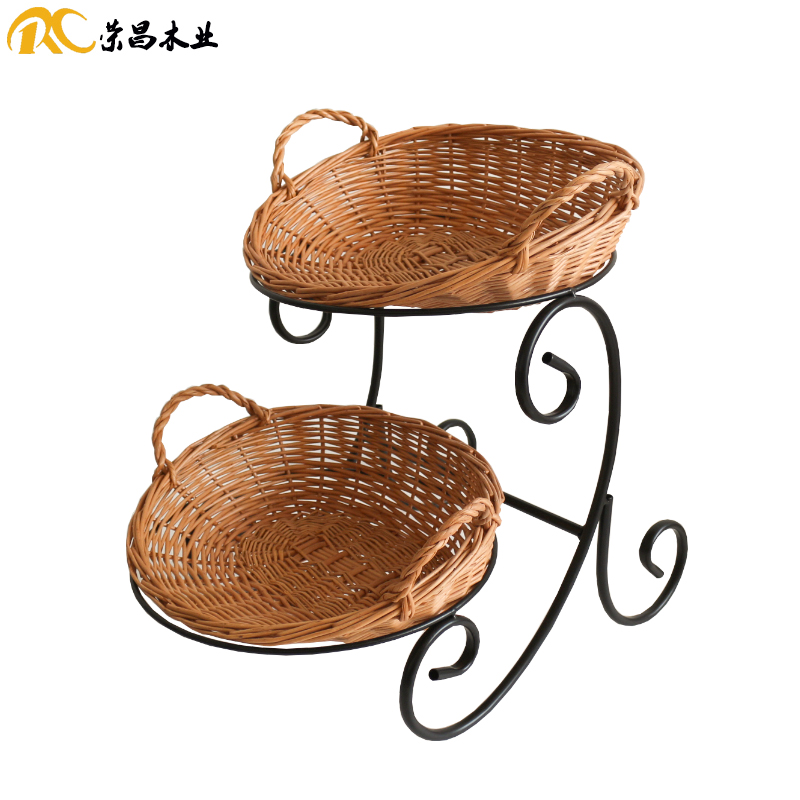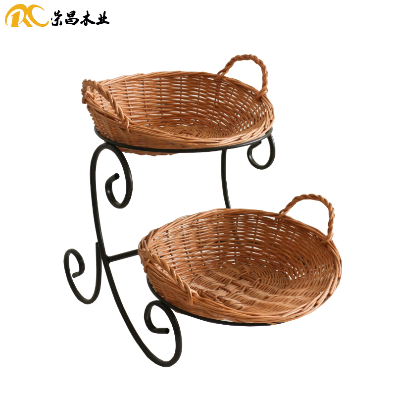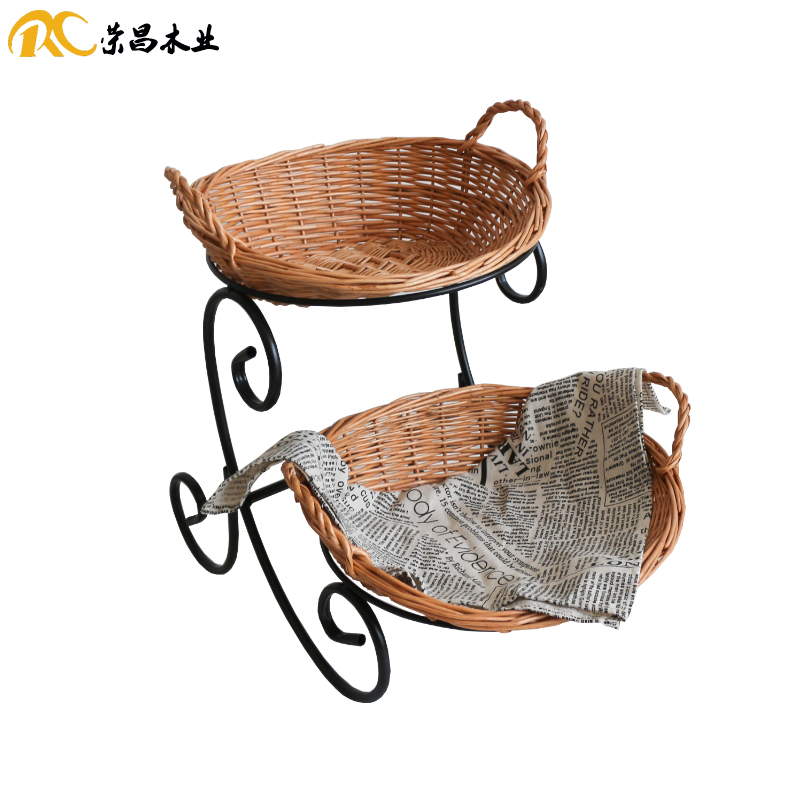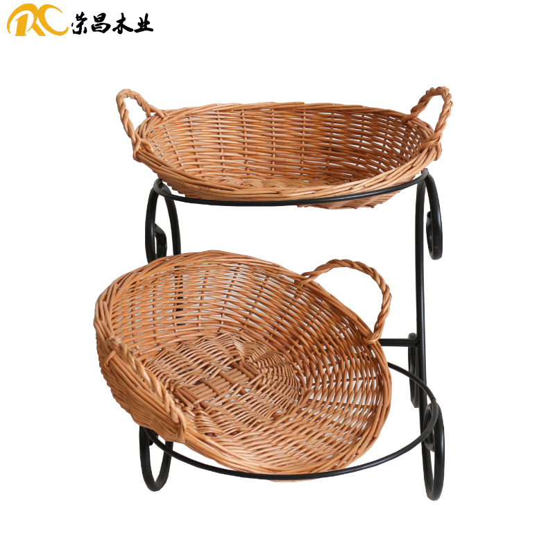 Rongchang Wooden Bread Basket Bakery Shop Willow Basket Two-Tier Pastry Basket Cake Shop Ornament Decoration Tray