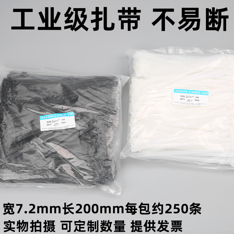 National standard self-locking nylon cable tie 8*200mm250 plastic lock fixed wire cable tie width 7 2mm