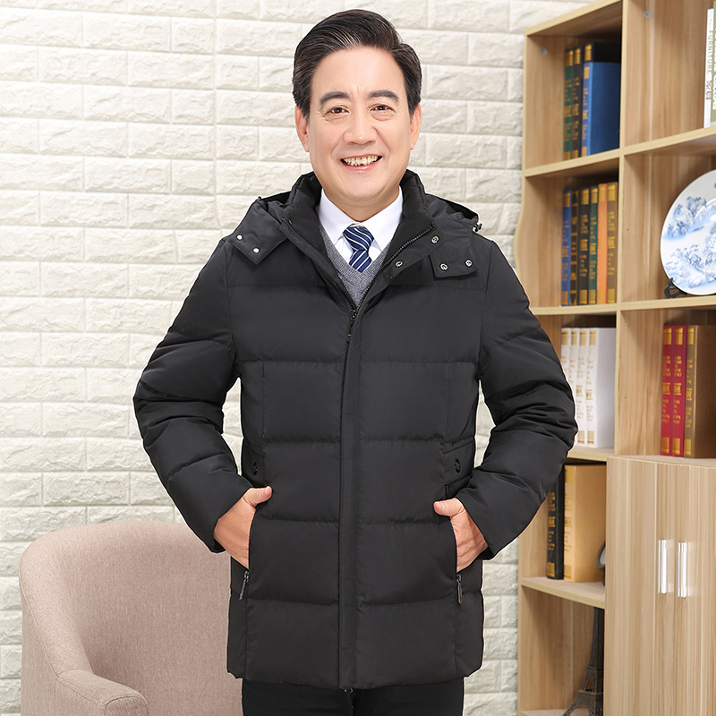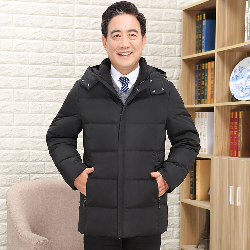 Qianren Gang winter new middle-aged men's down jacket hooded dad outfit thickened down jacket jacket men