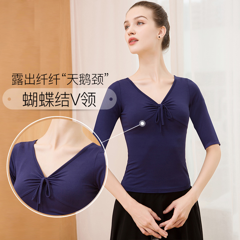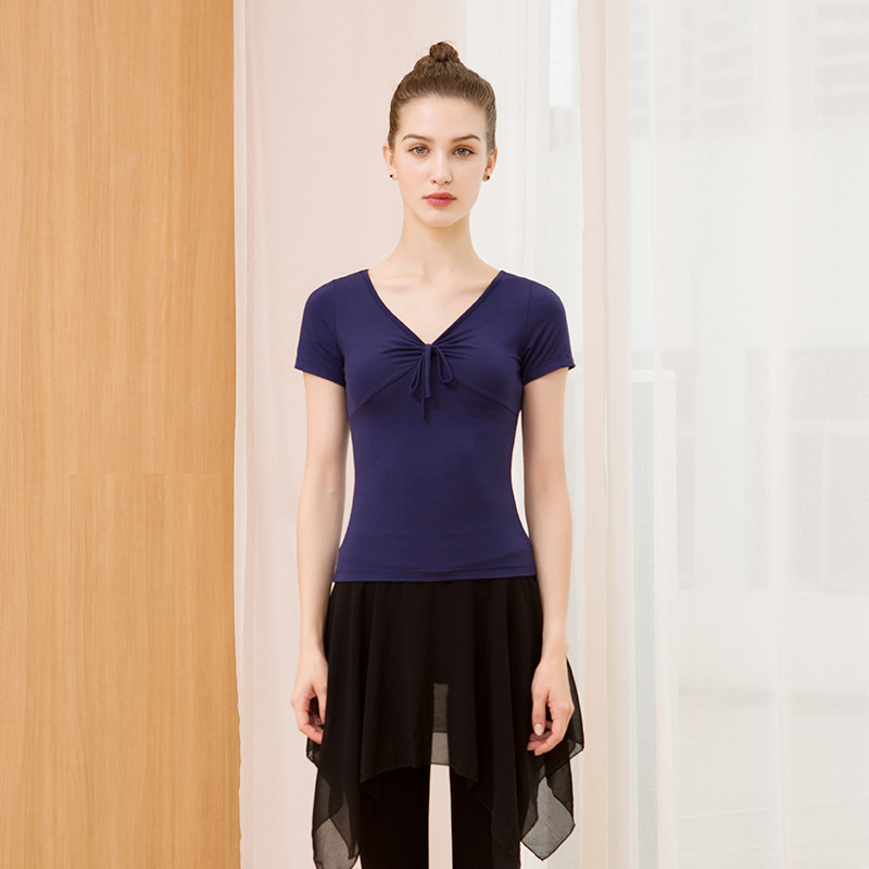 New V-neck Latin dance practice suit top Women's dance costume Dance Modal body summer short-sleeved summer dress