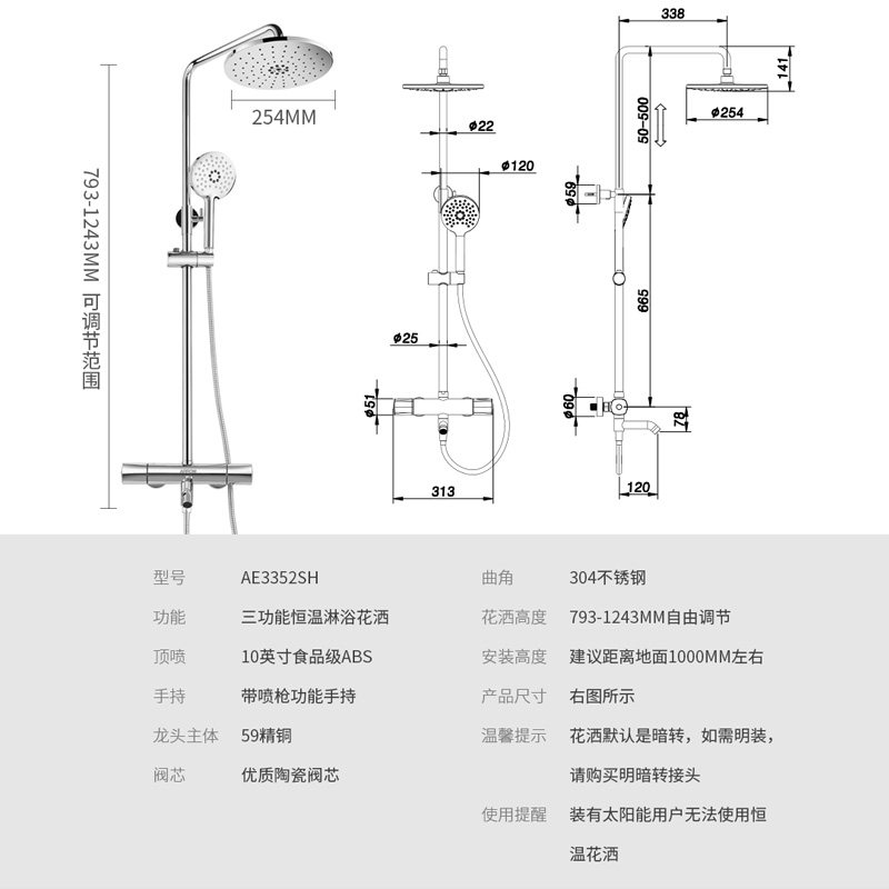 AE3352SH fine copper 4 functional shelve AE3359SHA black thermostatic entity in the same section AE3388SH silver color thermostatic