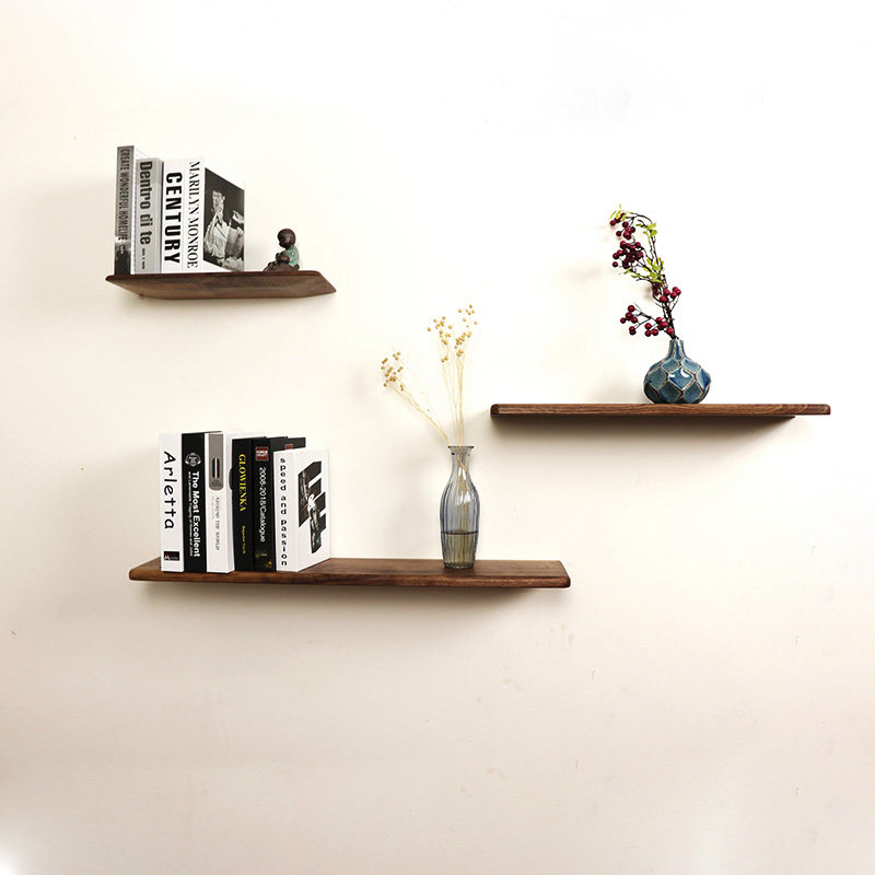 Nordic Black Walnuts Log-Lined Shelf Wall Solid Wood Wall-mounted Bookshelf Separator Stiletto Day-Style Brief