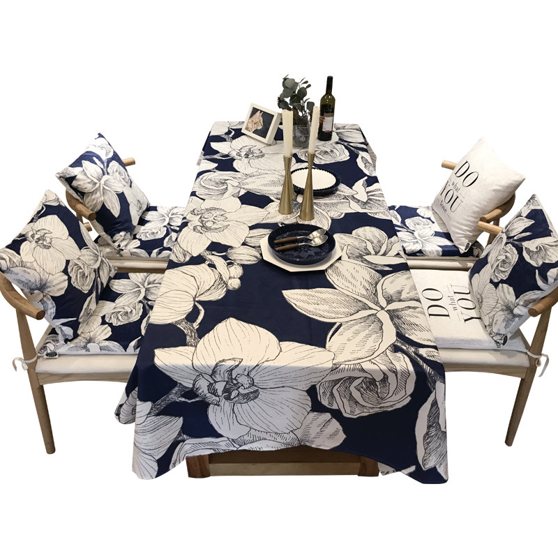 Cotton Thief New Waterproof and Antifouling Table Coffee Table Cloth Blue Cushion with Core Pillow Back Bag Chair Cushion Set