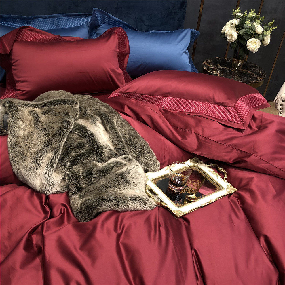 Italy imports 140 Egyptian long velvet cotton gunsatin wedding celebration four sets of light and luxurious all-cotton bed supplies-Taobao
