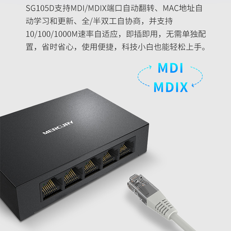MERCURY Mercury SG105D All one thousand trillion 5 words Internet Switch Campus Dormitory Home Office Monitoring 1000M Internet Desktop-type Internet Interface Increase Augers Network Route Streaming