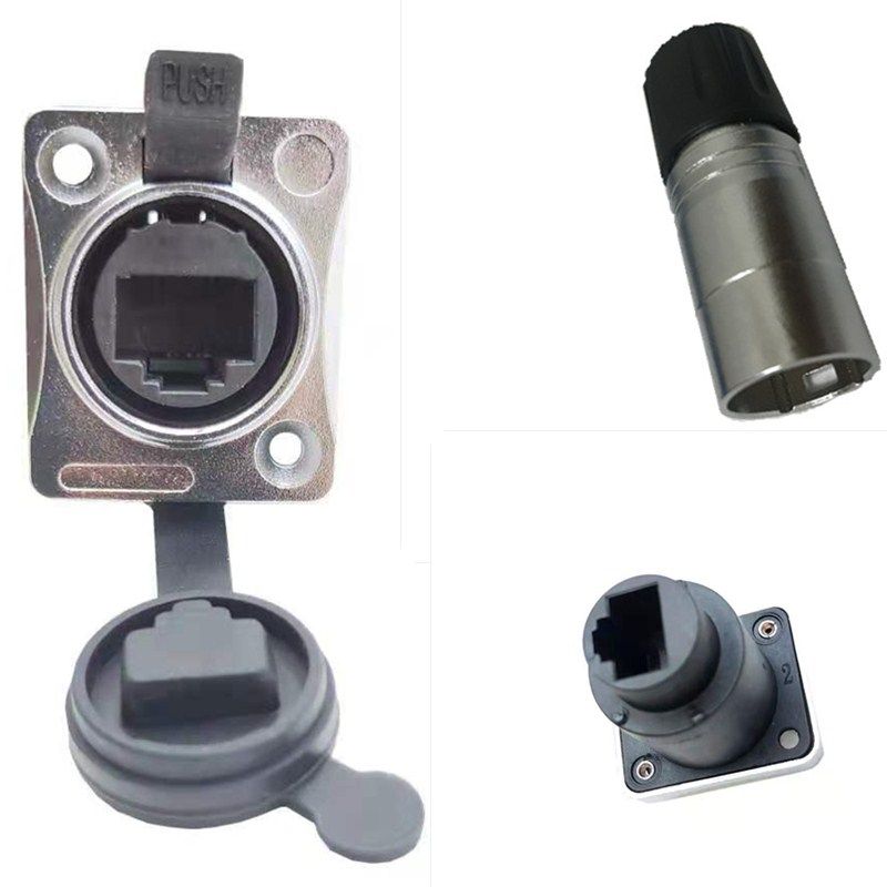 D-type snap-on RJ45 net route port straight-through male and female head plug-in 8P8C Ethernet waterproof aviation connector socket