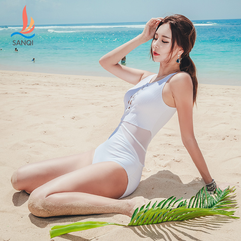 Three-chic swimsuit woman's body 2021 new sexy open-back spa with a slim Ins white sashimi swimsuit