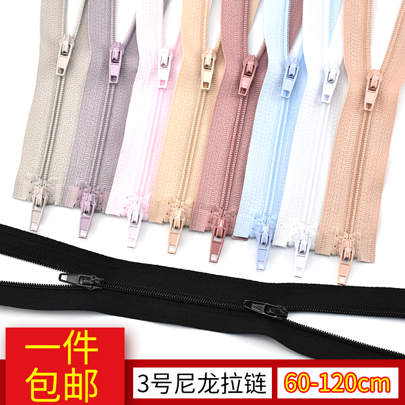 Sleeping bag zipper long double-ended double-opening pink No. 3 nylon zipper baby baby winter hold long pull lock