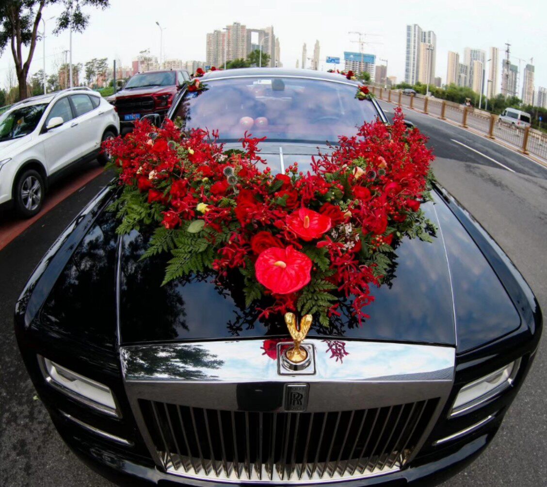 Big V Wedding Gift Car Decoration Main Wedding Gift Car Decoration Caravan Accessories Main Wedding Courtesy Car Decorated Flower Clay With Mud Suction Disc Square