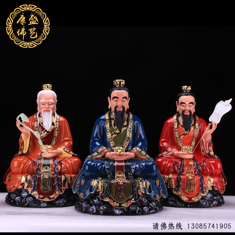 Sanqing God Statue Dao Patriarch Taishang Laojun Moral Yuanshi Lingbao Tianzun Daojia Resin Buddha Statue Offering Ornament