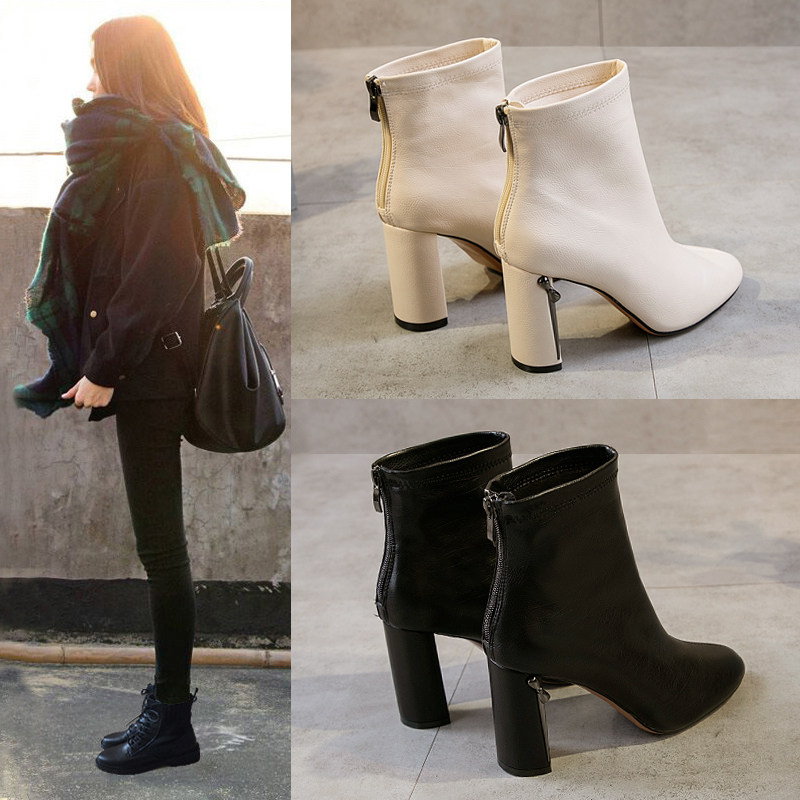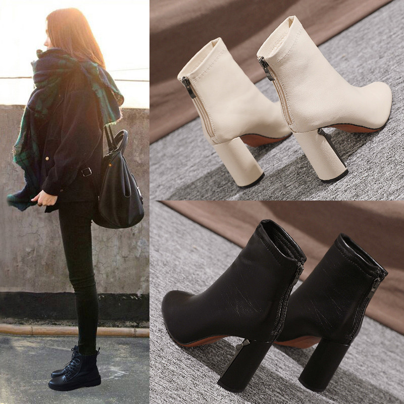 Coarse heeled high heels women's shoes Martin boots New 2021 Winter autumn winter Joker plus velvet slim boots beige