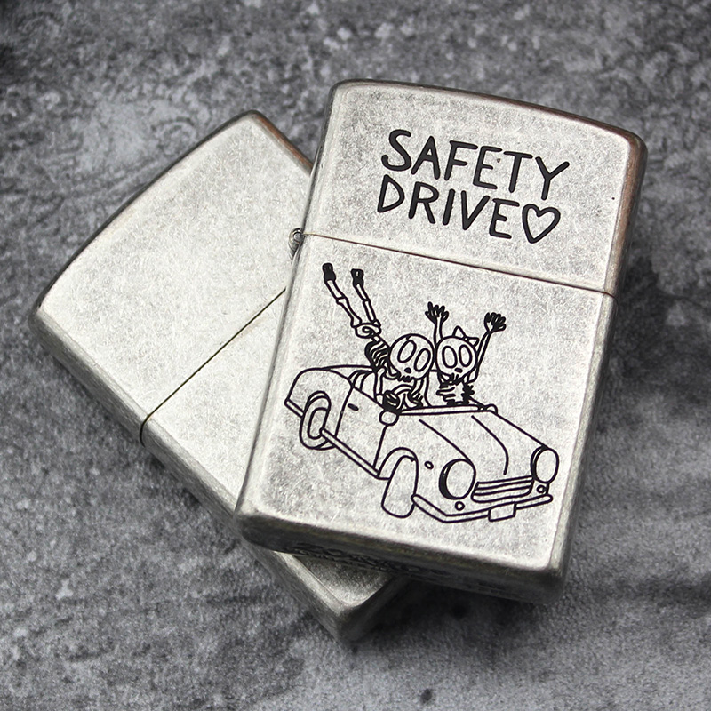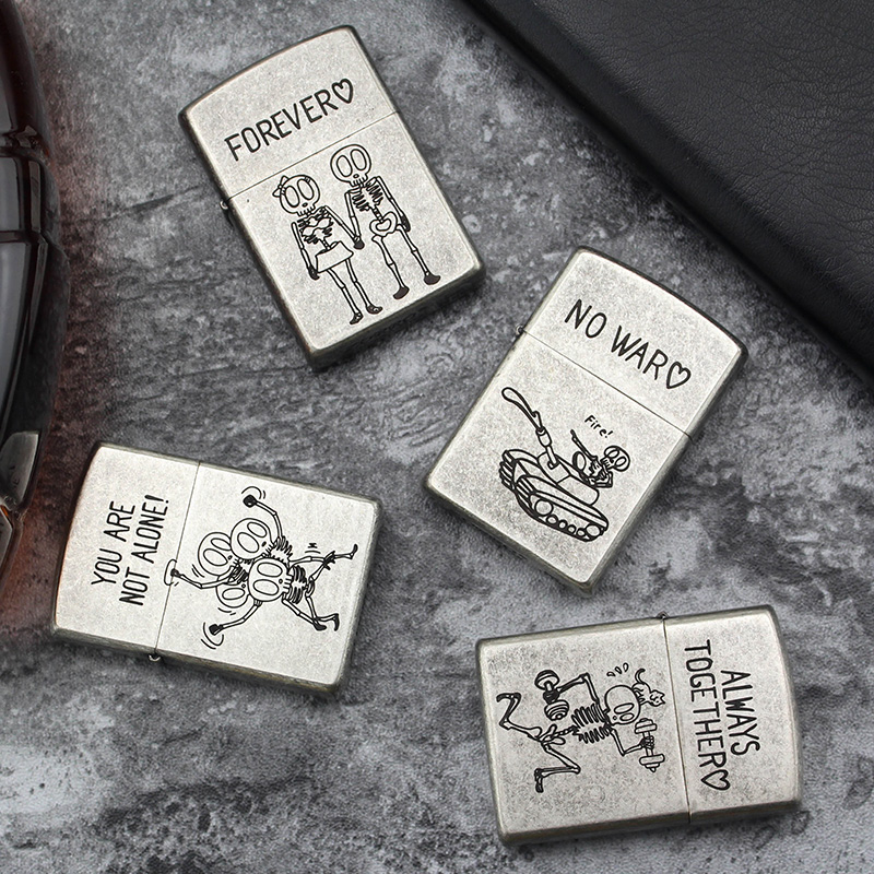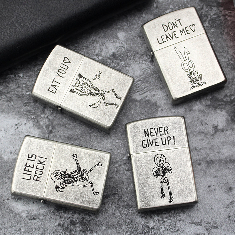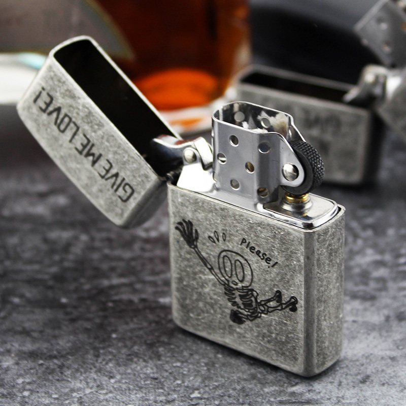 Zorro Zorro Copper Shell Kerosene Lighter Custom Made Old Ancient Silver Knurling Etching Skull Sending Fire Asbestos Core