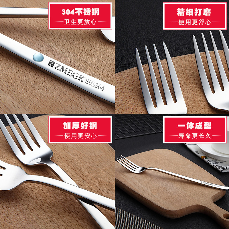 304 stainless steel fork home long handle adult meal fork western food main meal fork fruit salad steak fork noodle portable