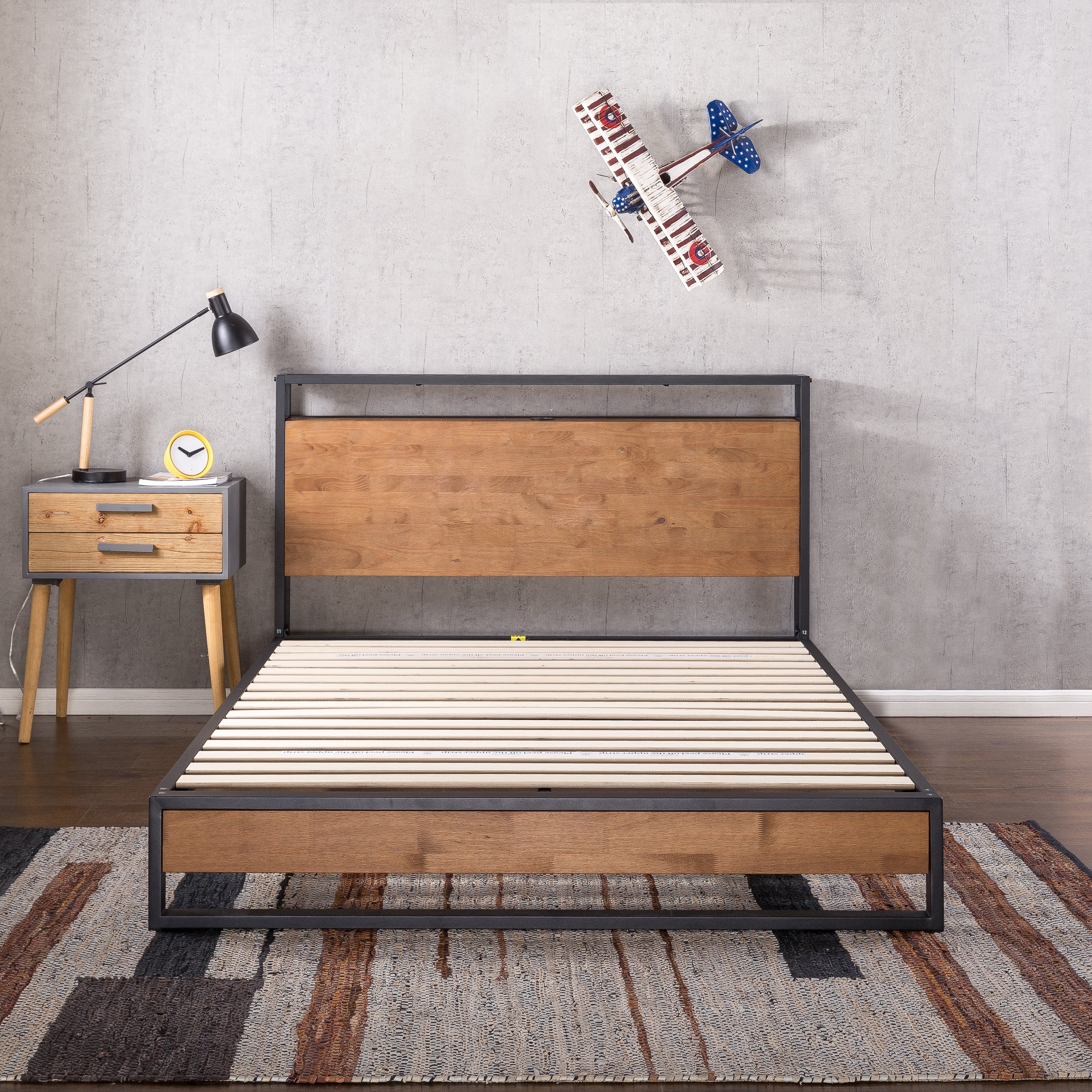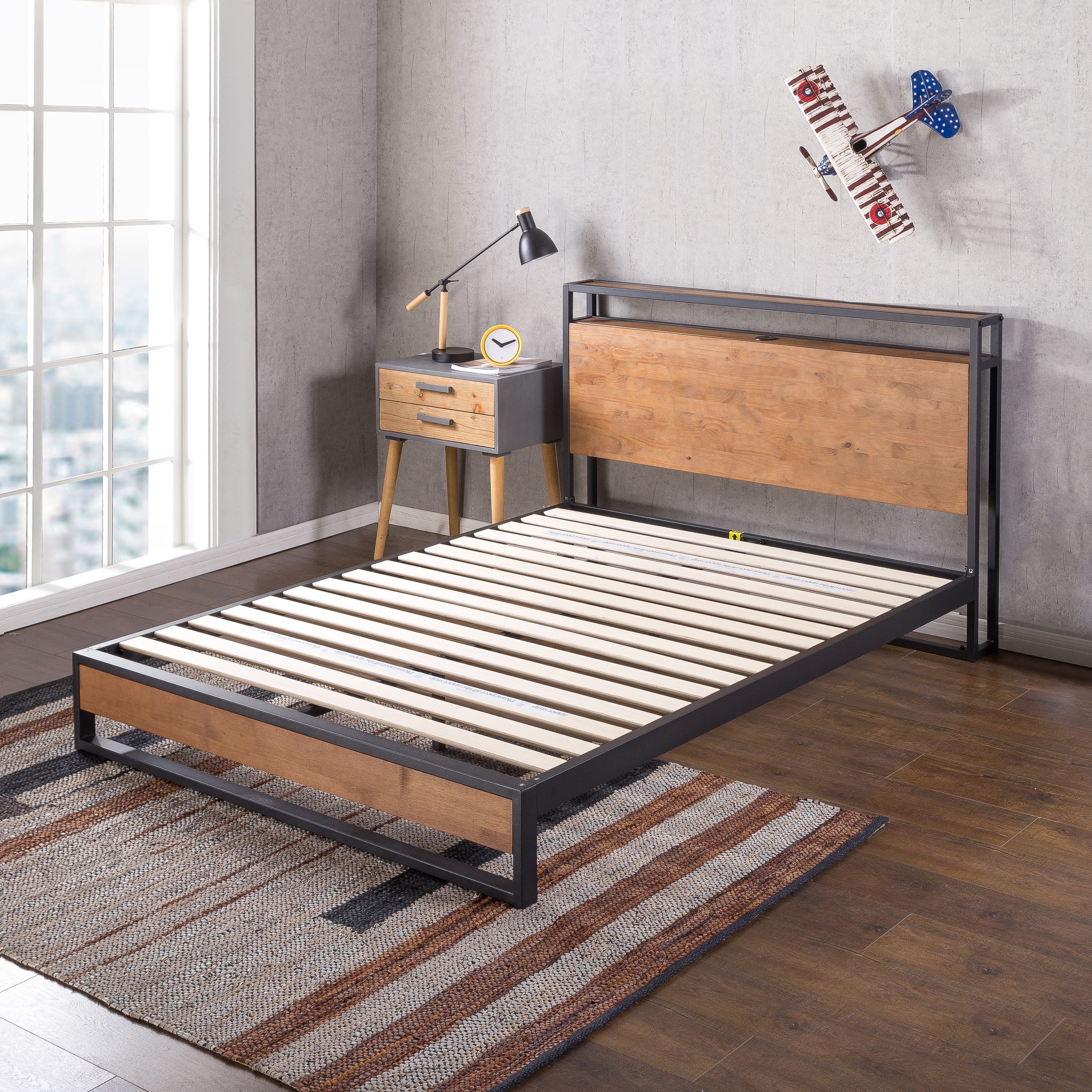 ZINUS Modern simple American style Wrought iron solid wood double bed 1 5M1 8m master bedroom home SW1